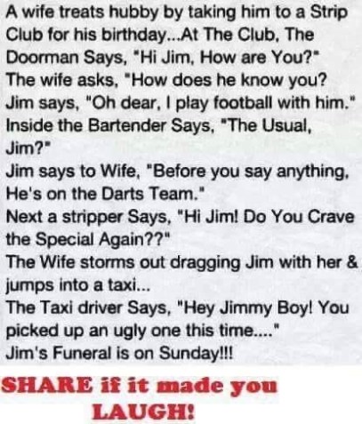 Daily Dose of Laughter April 24, 2022April 21, 2022 tolleystopicsLeave a comment Share this: Click to print (Opens in new window) Print Click to email a link to a friend (Opens in new window) Email Click to share on Facebook (Opens in new window) Facebook Click to share on LinkedIn (Opens in new window) LinkedIn Click to share on Reddit (Opens in new window) Reddit Click to share on X (Opens in new window) X Click to share on Tumblr (Opens in new window) Tumblr Click to share on Pinterest (Opens in new window) Pinterest Click to share on Pocket (Opens in new window) Pocket Click to share on Telegram (Opens in new window) Telegram Click to share on WhatsApp (Opens in new window) WhatsApp Like Loading...