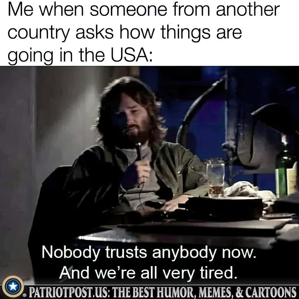 . PATRIOT POST MEMES August 24, 2024 tolleystopicsLeave a comment Share this: Click to print (Opens in new window) Print Click to email a link to a friend (Opens in new window) Email Click to share on Facebook (Opens in new window) Facebook Click to share on LinkedIn (Opens in new window) LinkedIn Click to share on Reddit (Opens in new window) Reddit Click to share on X (Opens in new window) X Click to share on Tumblr (Opens in new window) Tumblr Click to share on Pinterest (Opens in new window) Pinterest Click to share on Pocket (Opens in new window) Pocket Click to share on Telegram (Opens in new window) Telegram Click to share on WhatsApp (Opens in new window) WhatsApp Like Loading...